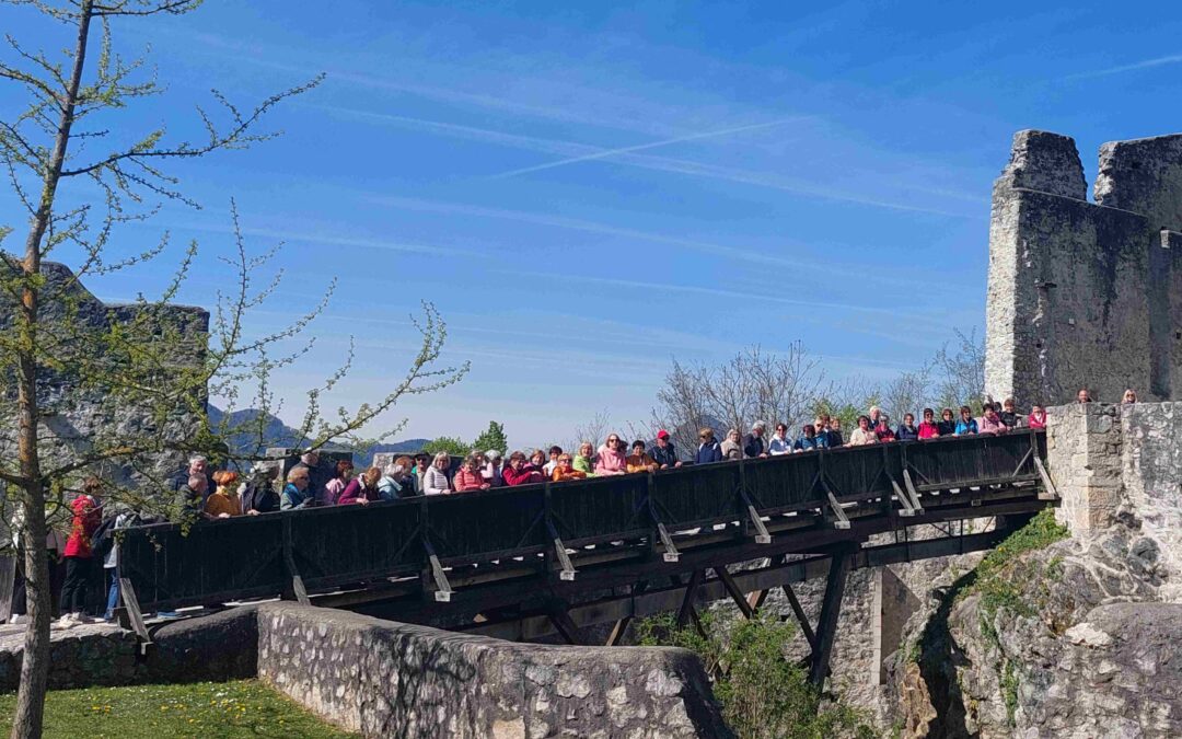 S skoraj uro zamude smo se vendarle pretolkli do slikovitega gradu, ki je bil priča vzponu in zatonu celjske dinastije, zidovi pa še vedno šepetajo slovensko različico Shakespearjeve tragedije, kjer vlogo Julije igra Veronika Deseniška, pri čemer 23 metrov visoki stolp nosi ime celjskega Romea – Friderika II. V njegovi senci smo zbrano prisluhnili vsem vojnim zaslugam, porokam, peripetijam, spletkam, ki so se ohranile v zgodovinskem spominu, s čimer se ne more pohvaliti nobena druga plemiška družina v našem prostoru.